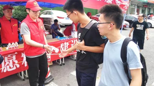在考場外搭起的遮陽棚中,為考生和家長提供了礦泉水、紙巾、應(yīng)急藥品、考試文具、扇子、手機充電設(shè)備等,并提供休息場所。志愿者們熱情地把愛心物品送到考生和家長的手中,并鼓勵考生們要放松心態(tài),沉著冷靜,相信自己,考出水平。志愿者們還在考前考后清理周邊垃圾,積極維護學(xué)校周邊的公共衛(wèi)生和秩序,為考生營造了良好的考試環(huán)境,使在考場外等待的家長倍感親切、溫暖。